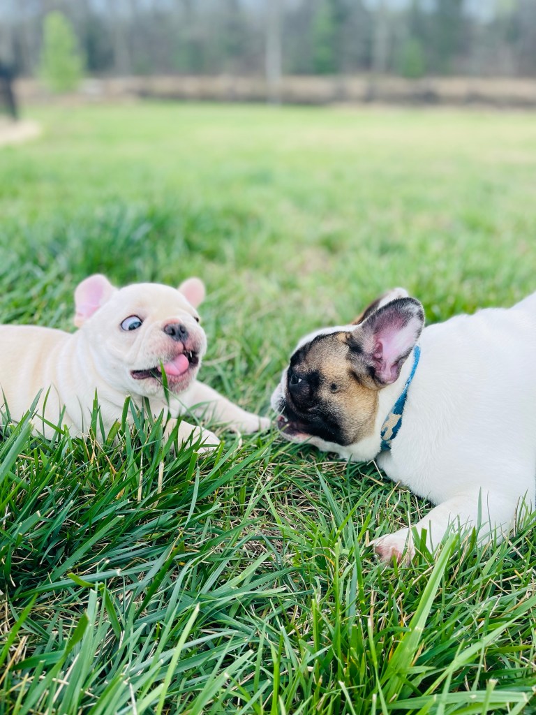 Winnie is another one of our future hopefuls. She is Dory’s Daughter by one of our favorite stud dogs from Northwood’s Bulldogs, Riot! She is a petite little thing with a beautiful head. Winnie also inherited her Mom’s super calm and sweet nature- which is one of our top priorities here at Fox Run Farm. As you can see, she and Louis are inseparable.