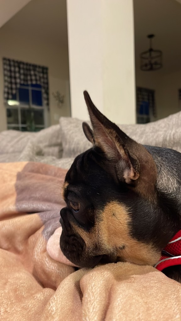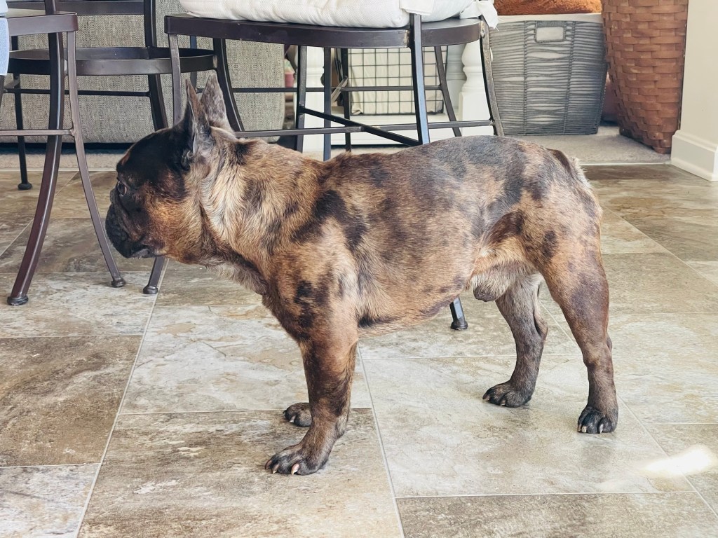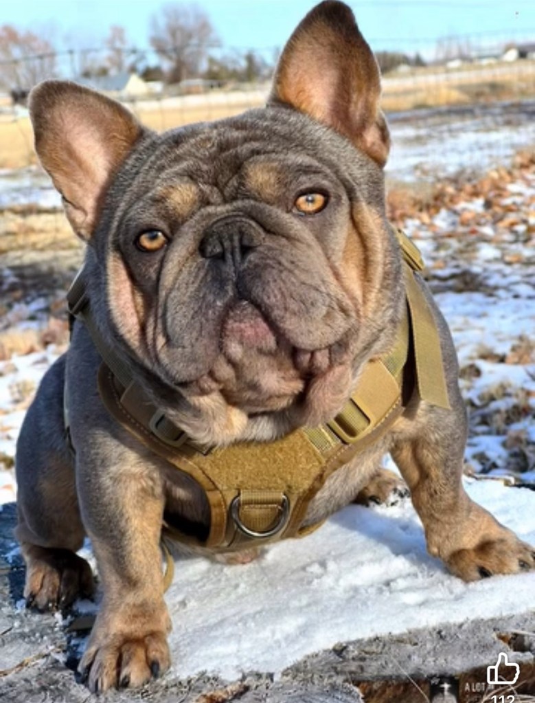 Pumba came from a mentor and breeder friend of mine and is one of the nicest bred merle bulldogs I’ve seen. His pedigree is packed with AKC champions including dogs from the well known Daystar kennel. He is a lovely compact and refined boy that we hope will size down some of our heavier girls while bringing a great pedigree to our program. Pumba sired two litters with us and was a wonderful Daddy. Sadly he injured his back last year among battling some other ailments that we felt disqualified him from breeding any farther. We decided to retire him and he is now living his best life on a couch with 2 fur-siblings. We miss him so so much but are happy he found such a great home that will ensure he doesn’t hurt himself again.